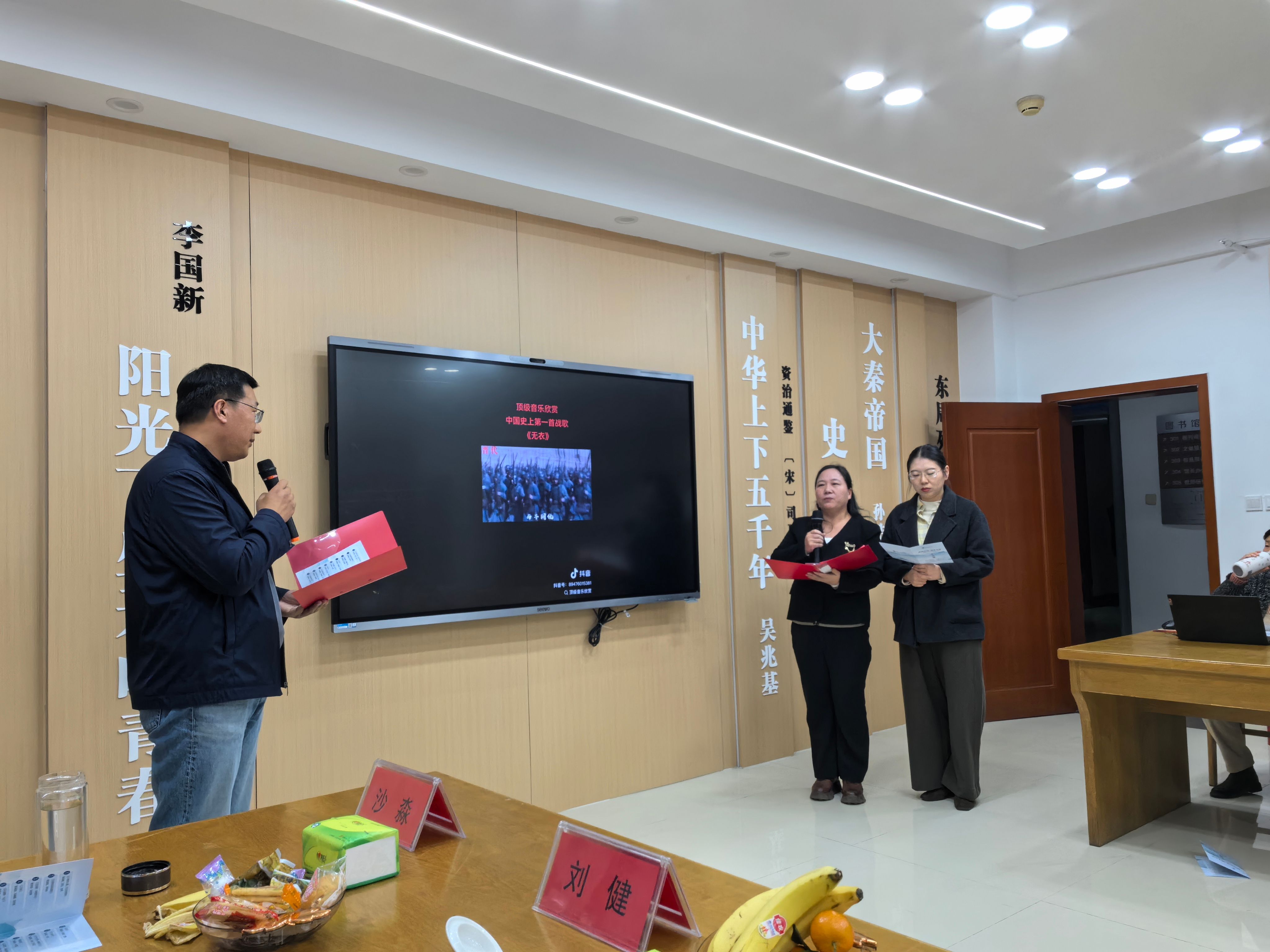 我校知联会副会长孔德凌带队,校图书馆馆长刘欣及会员代表共五人组成代表团队,全程参与活动组织与现场互动。活动中,我校知联会成员精彩表演,成为现场亮点。在“经典回响”诵读展示环节,知联会会员孔德凌、李永、李倩三位博士共同演绎先秦战歌《诗经・秦风・无衣》。三位博士以铿锵有力的语调、饱满真挚的情感,深刻传递出同仇敌忾、共赴国难的民族精神,引发全场强烈共鸣,充分展现我校党外知识分子深厚的文化底蕴与强烈的家国情怀。“教育心声”故事分享环节,我校知联会积极参与现场交流,结合活动主题分享我校党外知识分子在教育教学、科研育人中的实践感悟,为弘扬爱国主义精神、推动书香校园建设建言献策。刘欣在点评发言中,代表协办单位从教育工作者使命担当角度发声,强调“铭记历史是为了更好地前行,教育工作者要将家国情怀融入立德树人全过程”,其观点得到济宁市知联会及各参会单位的高度认可,进一步扩大我校知联会的影响力。
